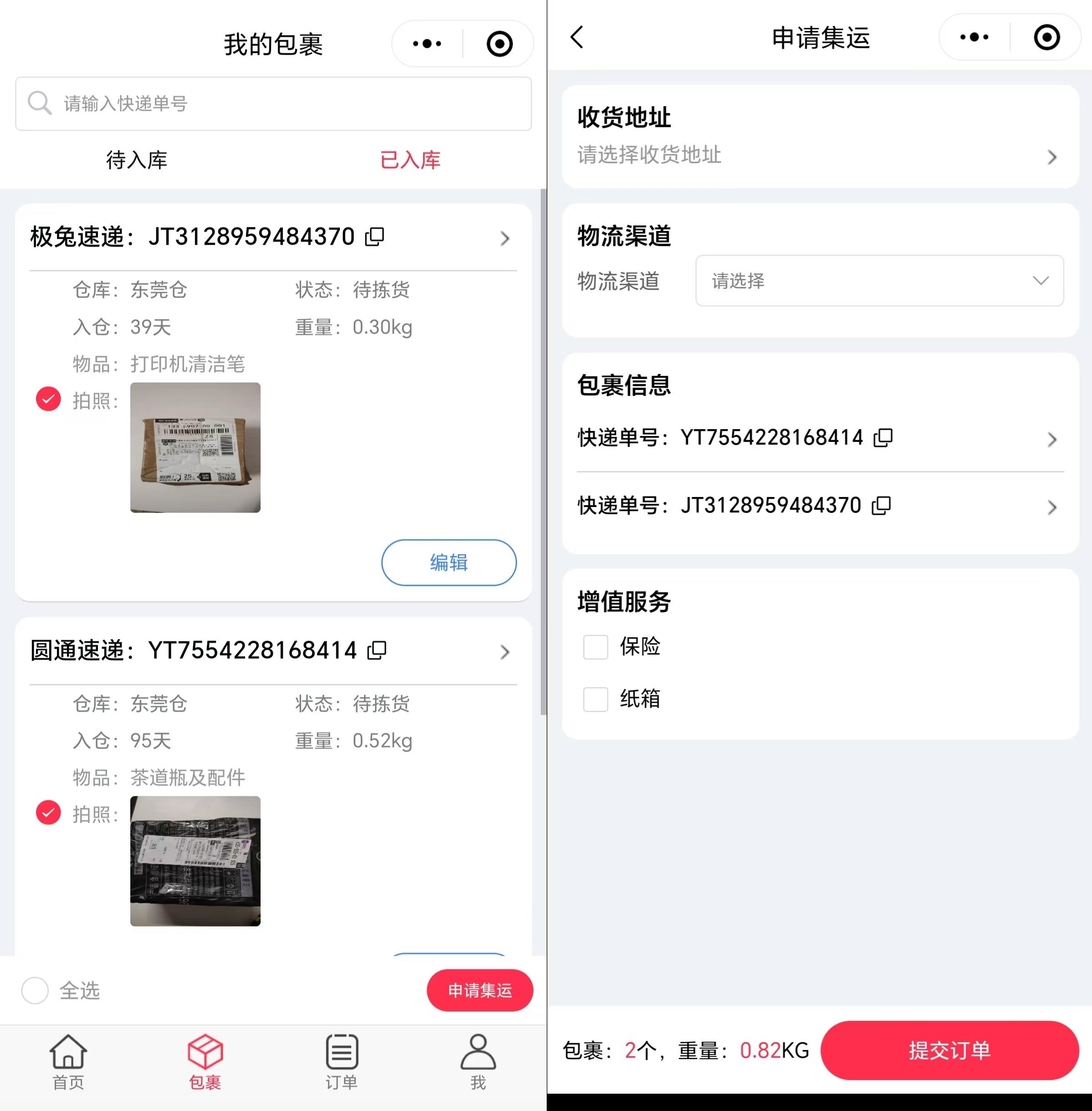 一件直邮下单的,到仓后直接打包,不需要申请集运操作了